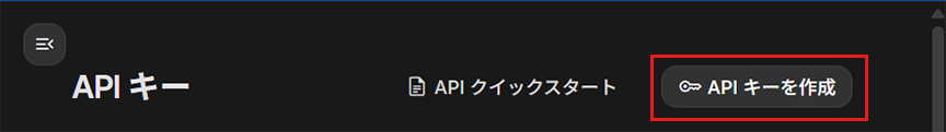 情報を入力し、キーを作成ボタンをクリックすると、APIキーが提供されます。